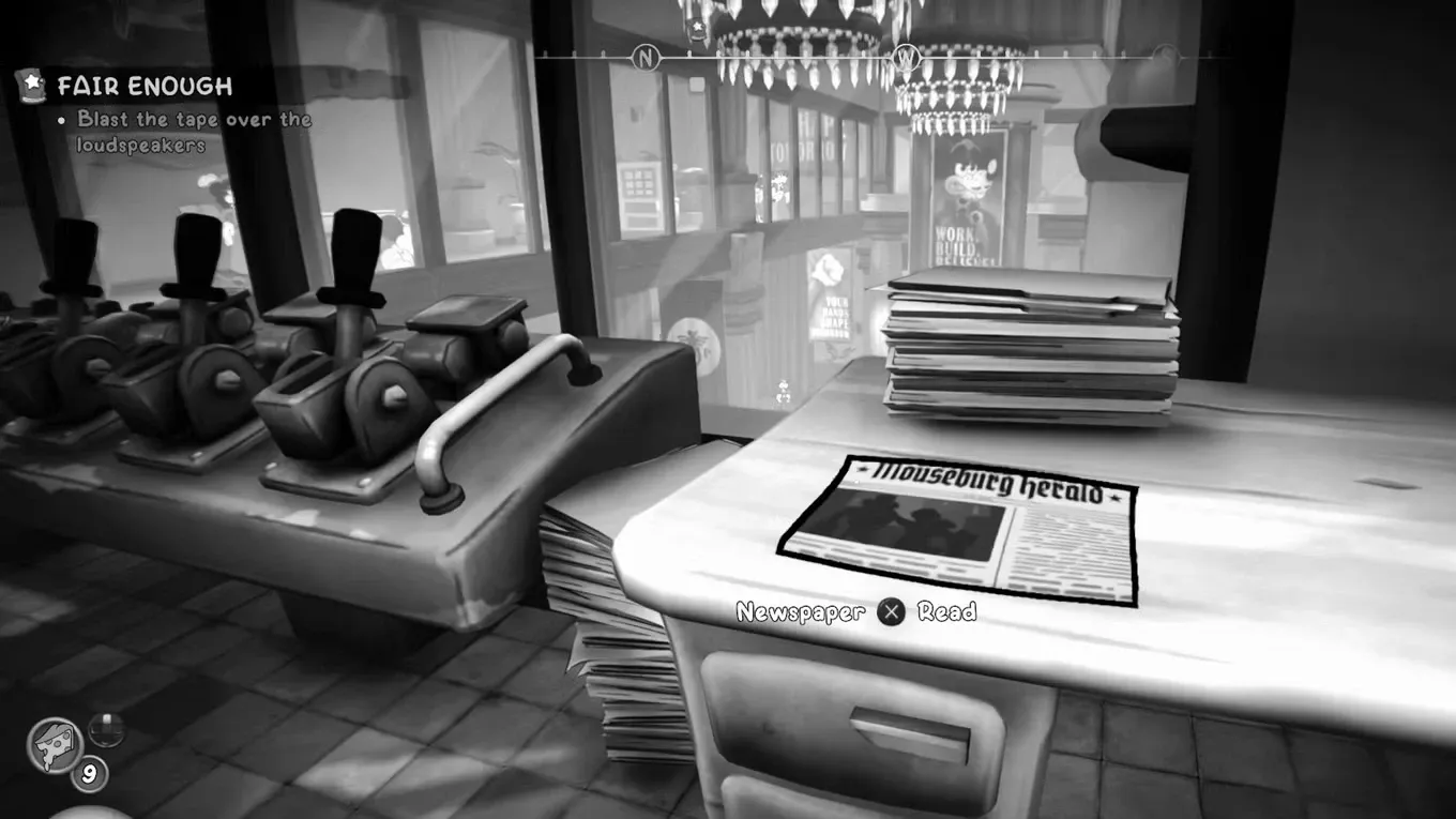 Assim que liberar a habilidade de escalar paredes, dê atenção à máquina de escrever no próximo ambiente. O jornal fica ao lado dela, em uma área que desaparece depois da etapa seguinte. É um daqueles itens fáceis de passar batido se você for direto demais no objetivo.